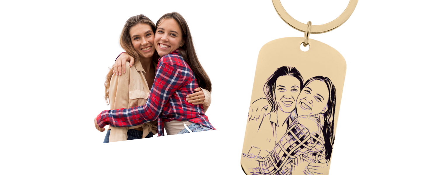 Personalizovaný Přívěsek na Klíče s Vyrytou Fotografií v Tvaru čtverce a Kruhu
