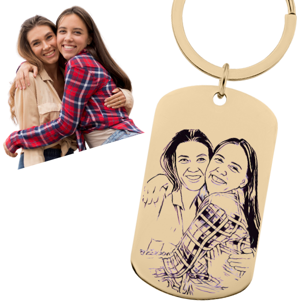 Personalizovaný Přívěšek na Klíče s 2 Kruhy a Vyrytou Fotografií